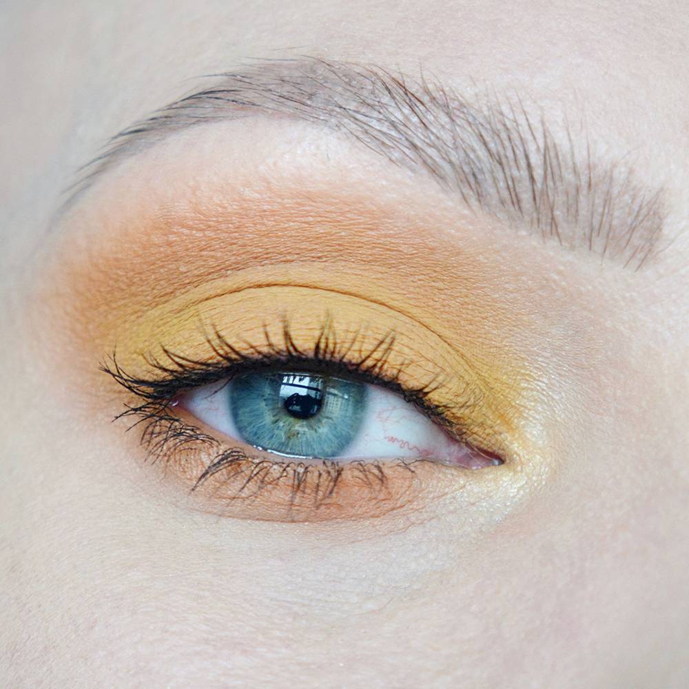 جفت کردن رنگ ها سرگرم کننده است زیرا لوازم آرایش رنگی، به ویژه سایه چشم، زمانی که با رنگ عنبیه تضاد داشته باشند، چشم ها را برجسته و جذاب می‌کنند. در چرخه رنگ، رنگ متضاد آبی زرد است، بنابراین سایه چشم زرد قناری این کار را برای چشمان آبی به خوبی انجام می‌دهد، اما هر سایه‌ای با ته رنگ زرد روی چشم‌های آبی نیز جادویی خواهد بود. هر رنگی از خانواده طلایی یا اخرایی برای شما مناسب است، مانند سایه چشم نارس رنگ Tulum.