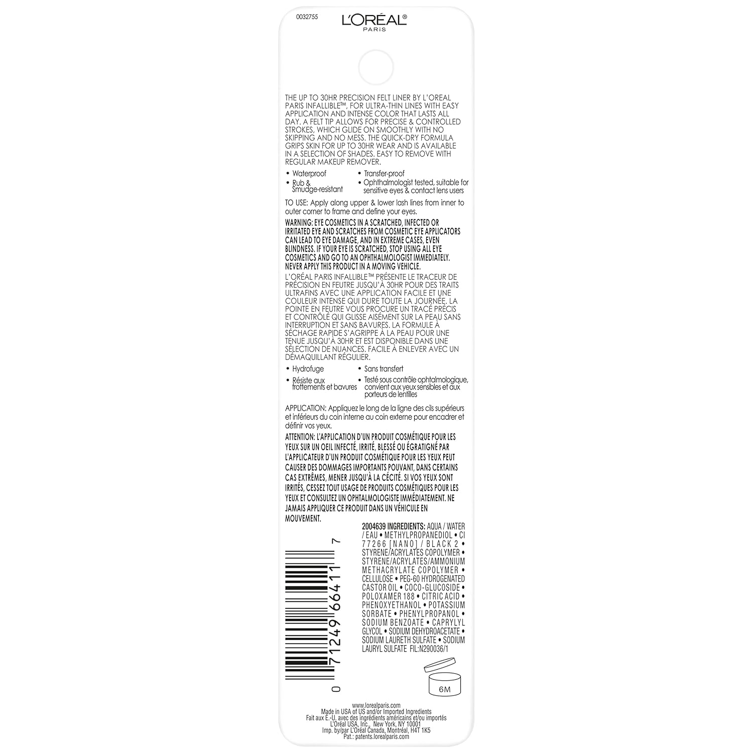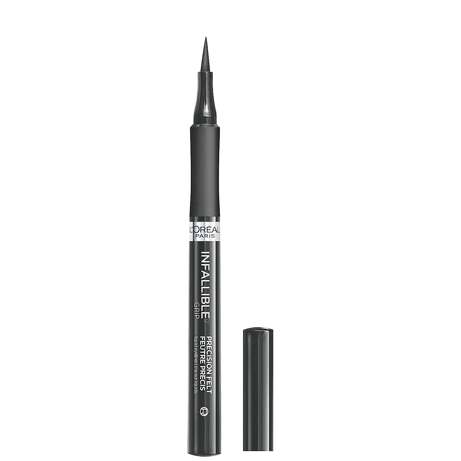 محصول L’Oréal Paris Cosmetics Makeup Infallible Grip Precision Felt Eyeliner یک خودکار مایع با نوک فلزی برای آرایش دقیق چشم است.
