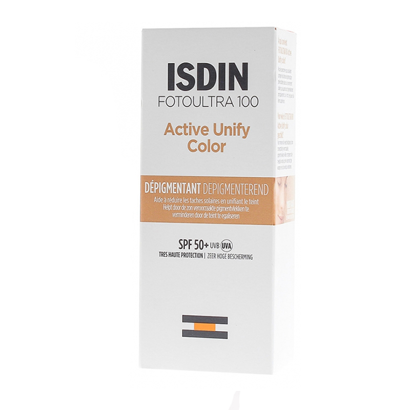 Isdin Fotoultra 100 Active Unify Color SPF 50+ یک کرم ضدآفتاب روزانه است که باعث تقویت و تسریع فرآیند ترکیب ملانین در پوست میشود.