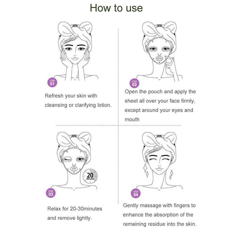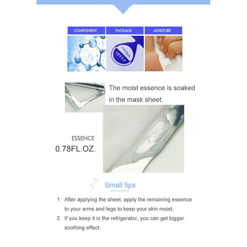 این ماسک ورقهای به نزدیک پوست صورت میماند تا رطوبت و مواد مغذی را به پوست منتقل کند و پوست را نرم و تازهتر کند.
