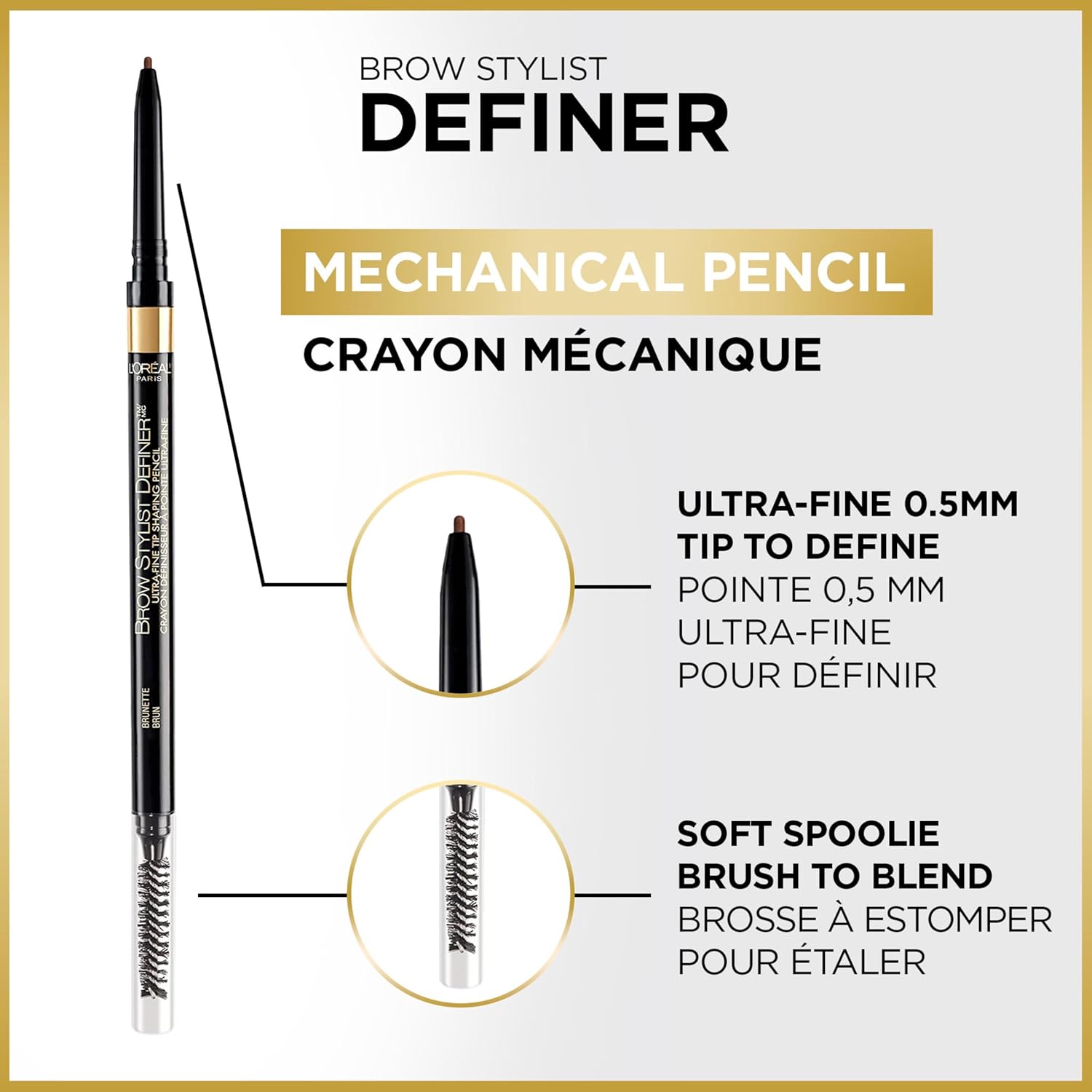 نوک فوقالعاده نازک ۰٫۵ میلیمتری: امکان کشیدن خطوطی شبیه به موهای طبیعی ابرو را فراهم میکند.