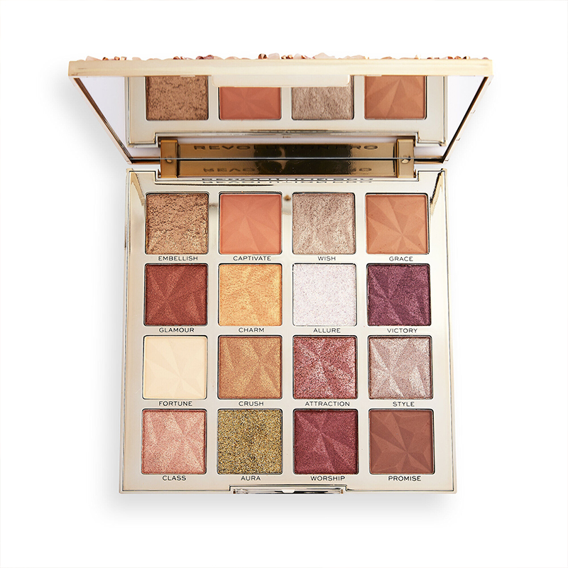 پالت کریستال Revolution Pro Ultimate in Adorned با طراحی منحصر به فرد خود امکان آرایشی خیره کننده با 16 رنگ رزگلد، مسی، قرمز، نارنجی، زرق و برقی،