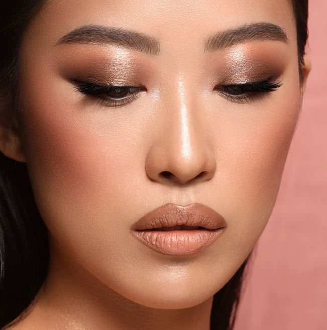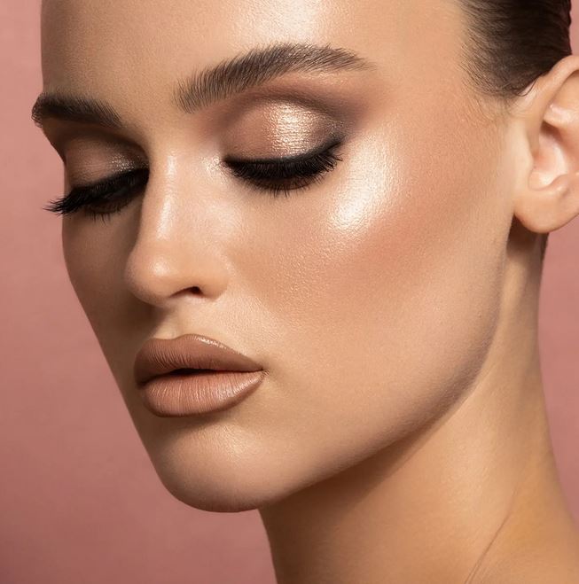 چشم با رنگهای خنثی، یک رژگونه کرمی و یک هایلایتر پودری است.