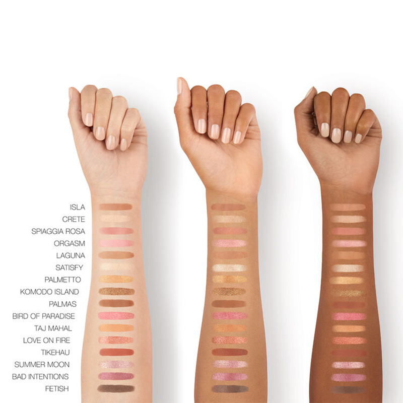 این پالت سایه 16 رنگ حاوی پوششهای مات، درخشان و براق است. در کنار آنها سایههای مکمل در طیفی از رنگهای خنثی مات، برنزهای گرم و رنگهای صورتی