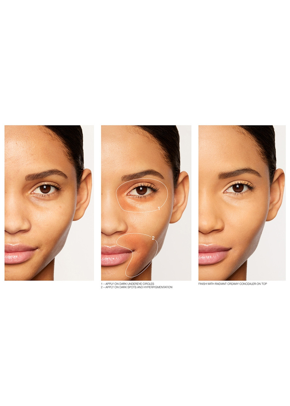 پوشش زیرین که حلقههای زیر چشم، لکههای تیره و هایپرپیگمانتاسیون میپوشاند. ترکیب خاص NARS به وسیله رنگدانههای قرمز رنگ، عیوب رنگ آبی و بنفش را